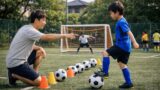 まず取り組んでほしいのは、マーカーを使った静止ボールのインステップキック練習です。止まったボールを正確に蹴る感覚を繰り返し確認し、フォームが整ってきたら少しずつ距離と動きを加えていきましょう。